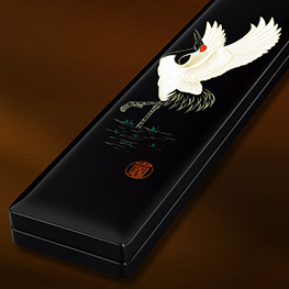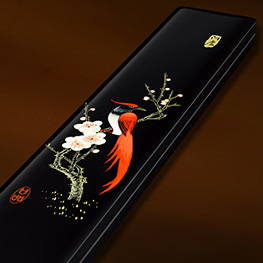 52黑色光面手繪浮漂盒-鶴壽天長